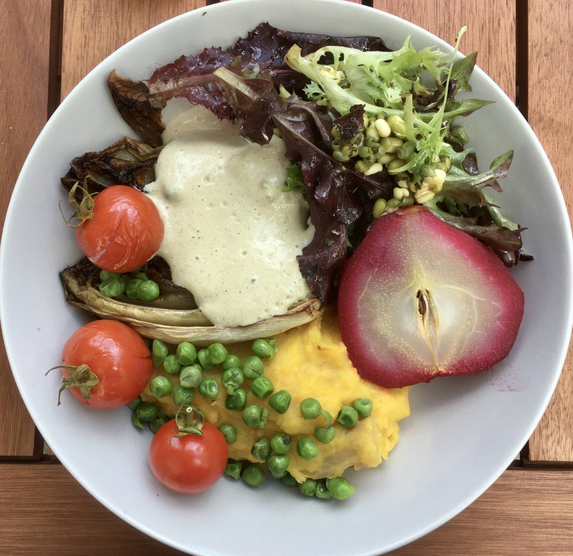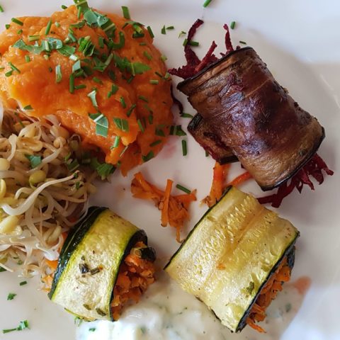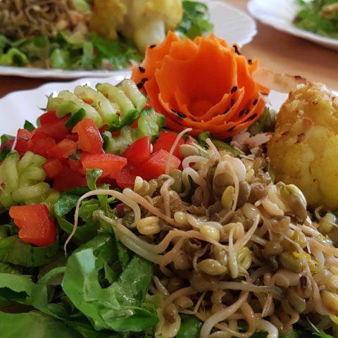 Die Nahrungsaufnahme konzentriert sich beim Intervallfasten auf einen Zeitraum von 6 Stunden, innerhalb derer Sie bei uns zwei sättigende Mahlzeiten zu sich nehmen: am Morgen genießen Sie einen reichhaltigen, grünen Wildkräuter-Smoothie und einen warmen, ayurvedisch gewürzten Frühstücksbrei. Nach der Wanderung reichen wir ein vollwertiges, kreatives veganes Gemüse-Mittagessen mit kleinem Dessert.